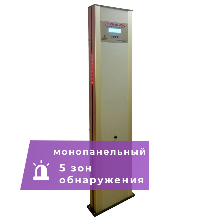 Моноблочный металлодетектор UltraScan M600 хоть и имеет небольшие размеры, обладает большими возможностями. Занимая мало места, так как имеет только одну стойку, он ничем не отличается от полноценного арочного металлодетектора и позволяет обнаруживать любые спрятанные на теле человека металлические предметы заданного размера и веса.